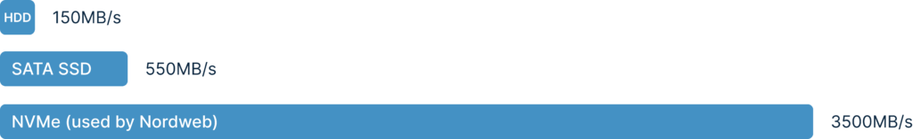 Käytämme NVMe -levyjä, jotka ovat jopa 10x nopeampia kuin perinteiset SSD-levyt.